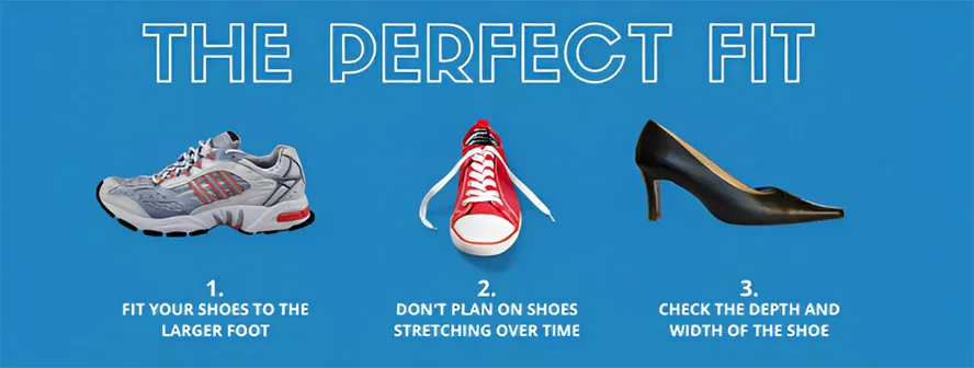Have you bought shoes online lately? Have you ever purchased a pair of uncomfortable shoes in the hope that you will ‘break them in’ over time? Shoes serve to protect our feet, however, poorly fitting shoes can cause a myraid of foot problems including bunions, corns, hammertoes, stress fractures and more. Mirco trauma to the nails caused by wearing narrow-toed is also responsible for exacerbating common chronic diseases such as onychomycosis (OM). Constant rubbing is likely to break the barrier of the hyponychium, creating a gateway for dermatophyte fungi to invade the nail structure. As podiatrists it is our job to help you make long-term decisions that will positively impact your feet. If you are unsure whether you are wearing the right size shoes, we suggest that you consider the following: